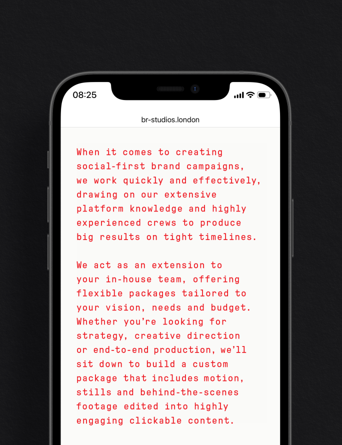 Developed as a sister company to Black Rabbit, BR–STUDIOS is a social-first production studio offering predefined production packages designed to give brands with smaller budgets and faster timelines access to a level of service and aesthetic that was previously out of reach. Drawing on Black Rabbit’s streamlined creative approach, industry network and extensive platform knowledge, the studio delivers high-impact social campaigns without compromising on quality.